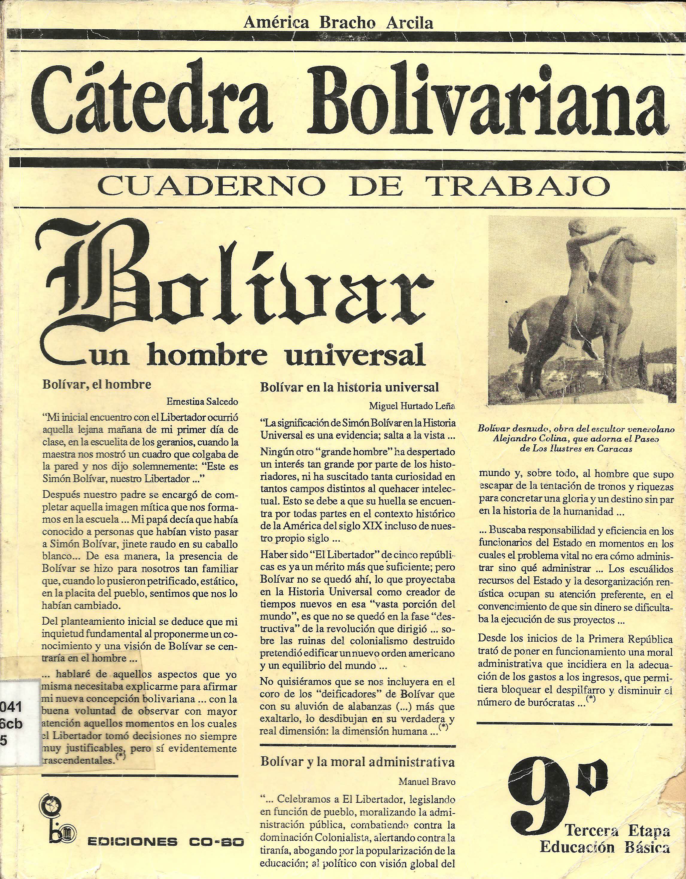 CÁTEDRA BOLIVARIA. BOLÍVAR, UN HOMBRE UNIVERSAL. CUADERNO DE TRABAJO